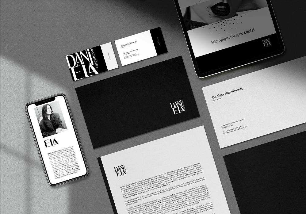 Preto no branco! O clean tipográfico representado na marca reforça a personalidade de Daniela e empoderada o público alvo ELAS.